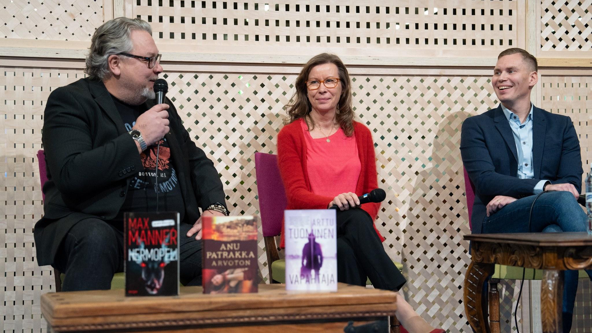 15.30 Tuomas Lius (CrimeTime), Antti Tuomainen (Otava), Mikko With (Myllylahti)