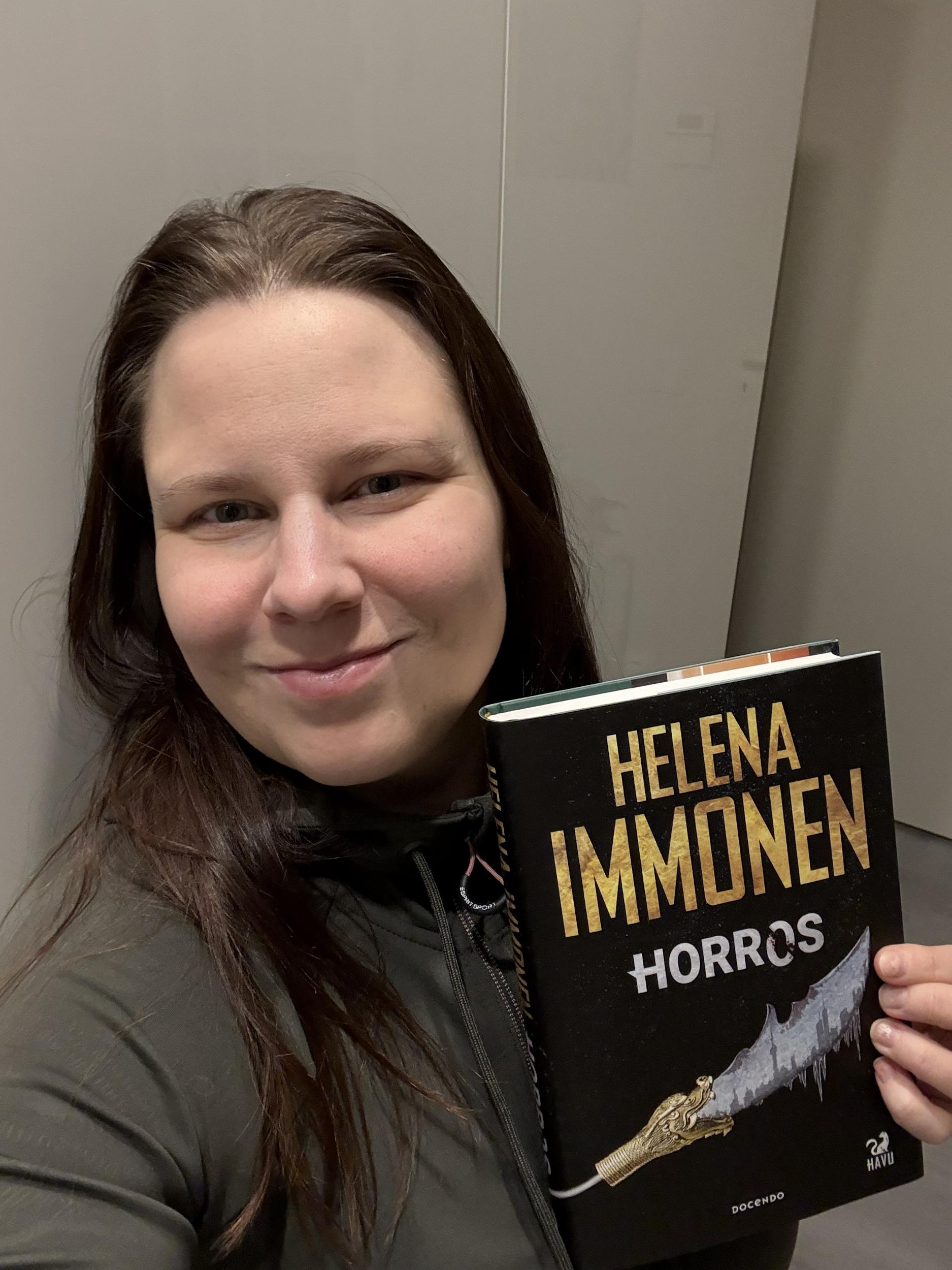 Dekkariseuran osastalla vaihdoin pari sanaa Max Mannerin, Arttu Tuomisen, Anu Patrakan, Satu Rämön, Gabriel Korven ja monen muun kirjailijan kanssa. Myös Helena Immonen oli tapaamislistallani, sillä olen pitänyt hänen Napakerttu -sarjastaan.