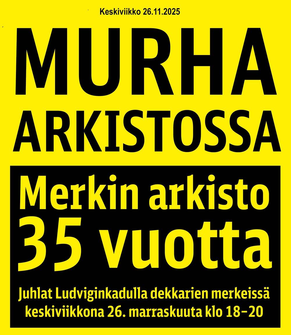 Murha arkistossa -ilta Merkki-museossa 26.11. klo 18 Historiallisten dekkarien ystävien Murha arkistossa -iltaa vietetään Median arkisto ja museo Merkissä (Ludviginkatu 2-4, Helsinki) keskiviikkona…
