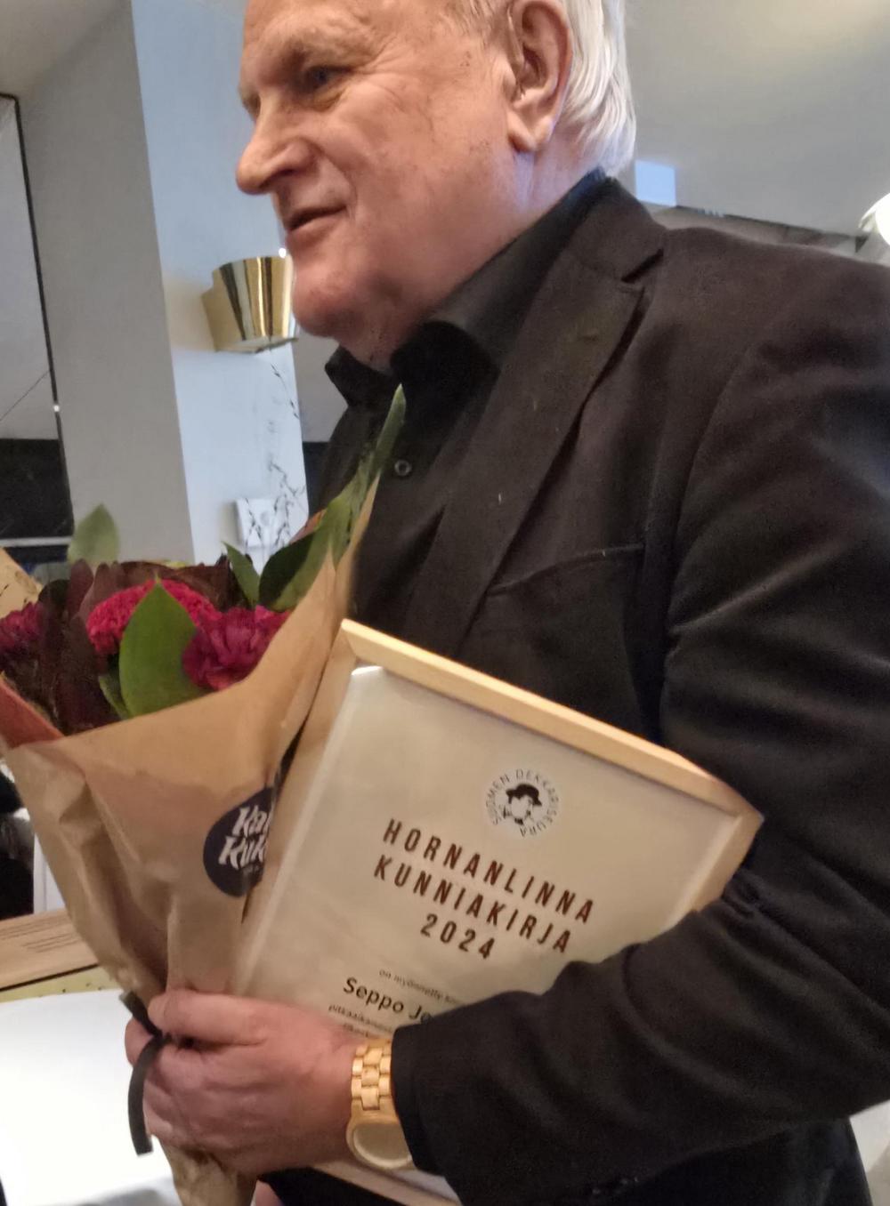 Suomen dekkariseuran Hornanlinna-kunniakirja luovutettiin Seppo Jokiselle