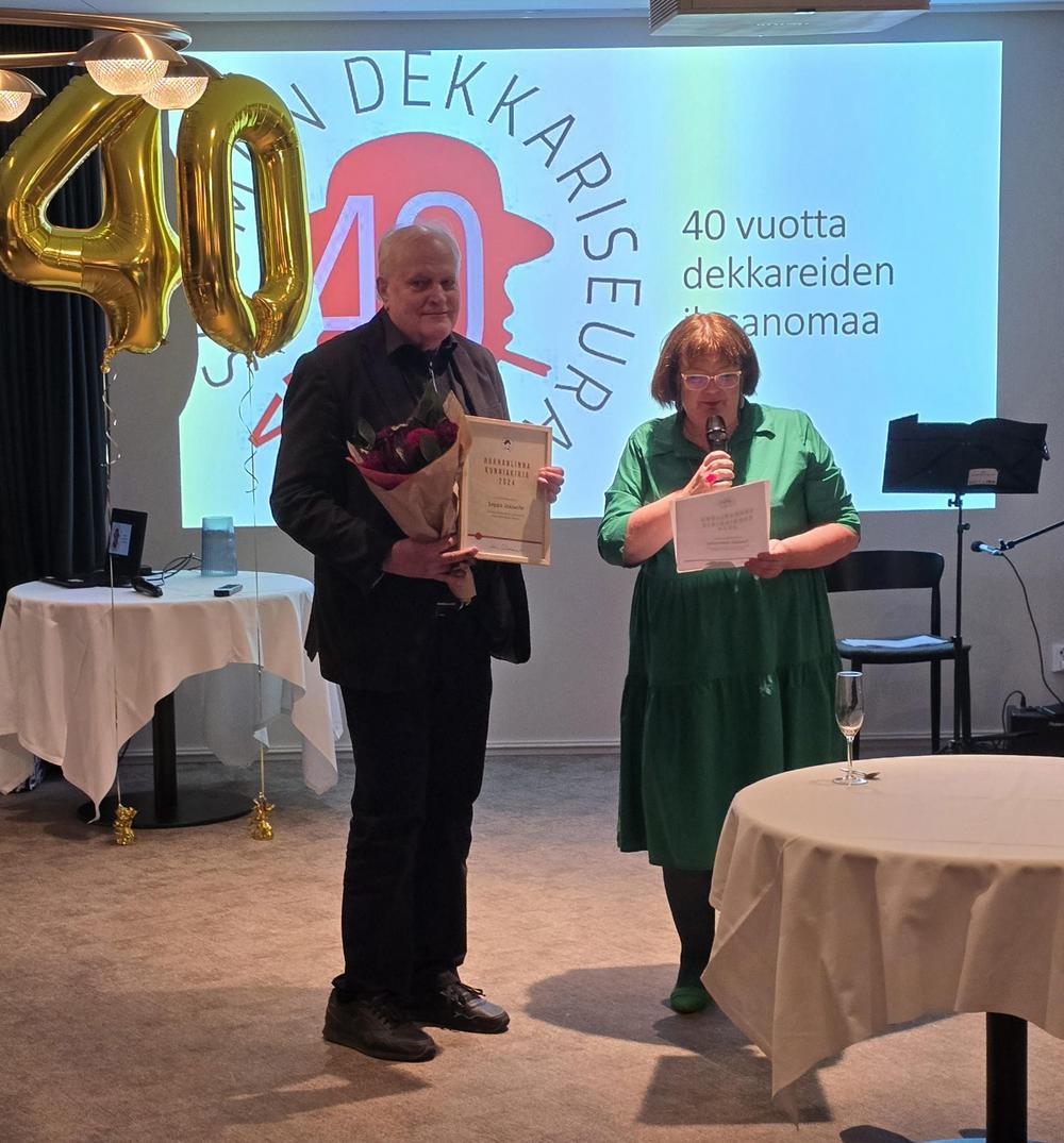Kunniakirja luovutettiin Dekkariseuran 40-vuotisjuhlissa Helsingissä Sokos Hotelli Vaakunassa myöhään lauantai-iltana 26.10.2024.