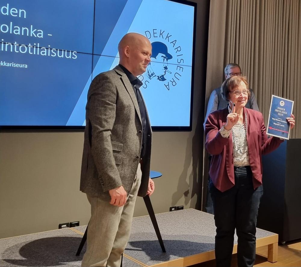 "Olimme aivan häkeltyneitä kuullessamme tästä harvinaisesta kunnianosoituksesta. Kun katsoimme Dekkariseuran sivuilta aikaisemmat voittajat, olimme entistä häkeeltyneempiä. Voittajien joukossa oli laajan tuotannon tehneitä kirjailijoita sekä Matti Kassila. Ja nyt me olemme ikään kuin samassa nipussa. Blue Moon -kustantamon tarina on pitkä. Ulla oli 1990-luvulla sanomalehti Keskisuomalaisen dekkarikriitikko. Raahasimme Ullan kanssa Lontoosta matkalaukullisen dekkaripokkareita ja olimme hyvin kartalla siitä, mitä maailmalla julkaistiin. Ulla ihmetteli minulle, miksi tätä ja tuota ei julkaista suomeksi. Tältä pohjalta aloitimme julkaisutoimintamme. Kaupallista menestystä emme koskaan saavuttaneet mutta pystyimme jatkamaan toimintaamme, koska ei se tappiollistakaan ollut. Tämä palkinto on meille tärkeä, koska saamme tämän myötä asiantuntijoiden kiitokset tekemästämme työstä. Olemme otettuja ja kiitollisia tästä kunnianosoituksesta."