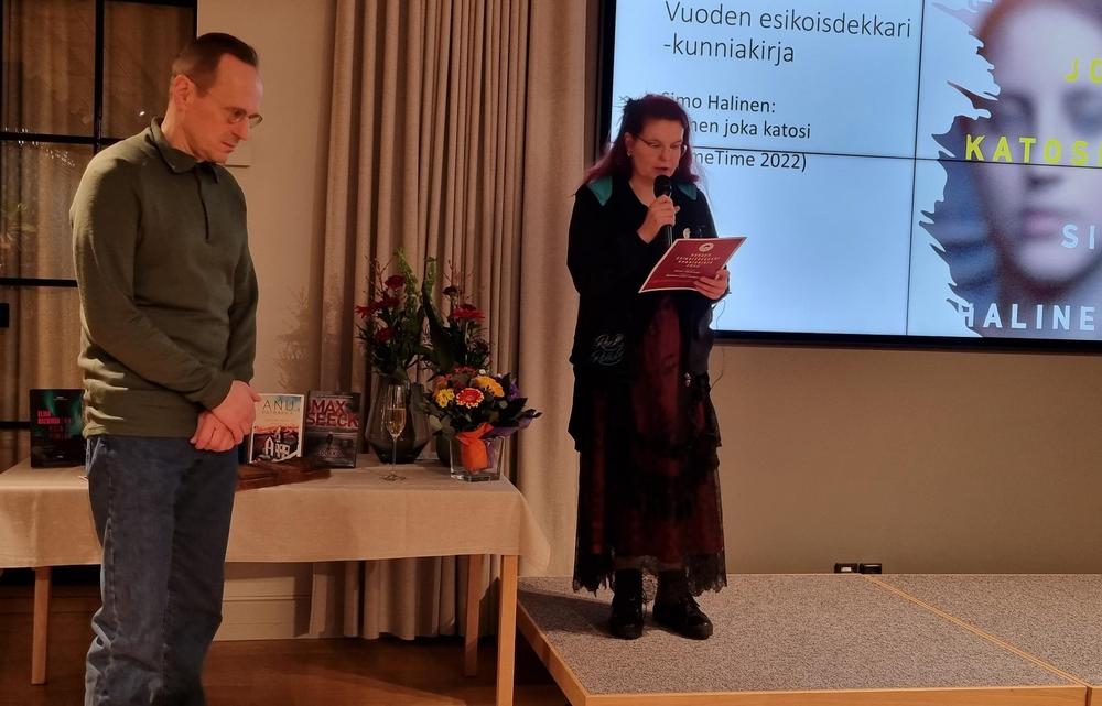 Vuoden esikoisdekkari -kunniakirja luovutettiin Simo Haliselle romaanista Tyttö joka katosi (CrimeTime 2022)