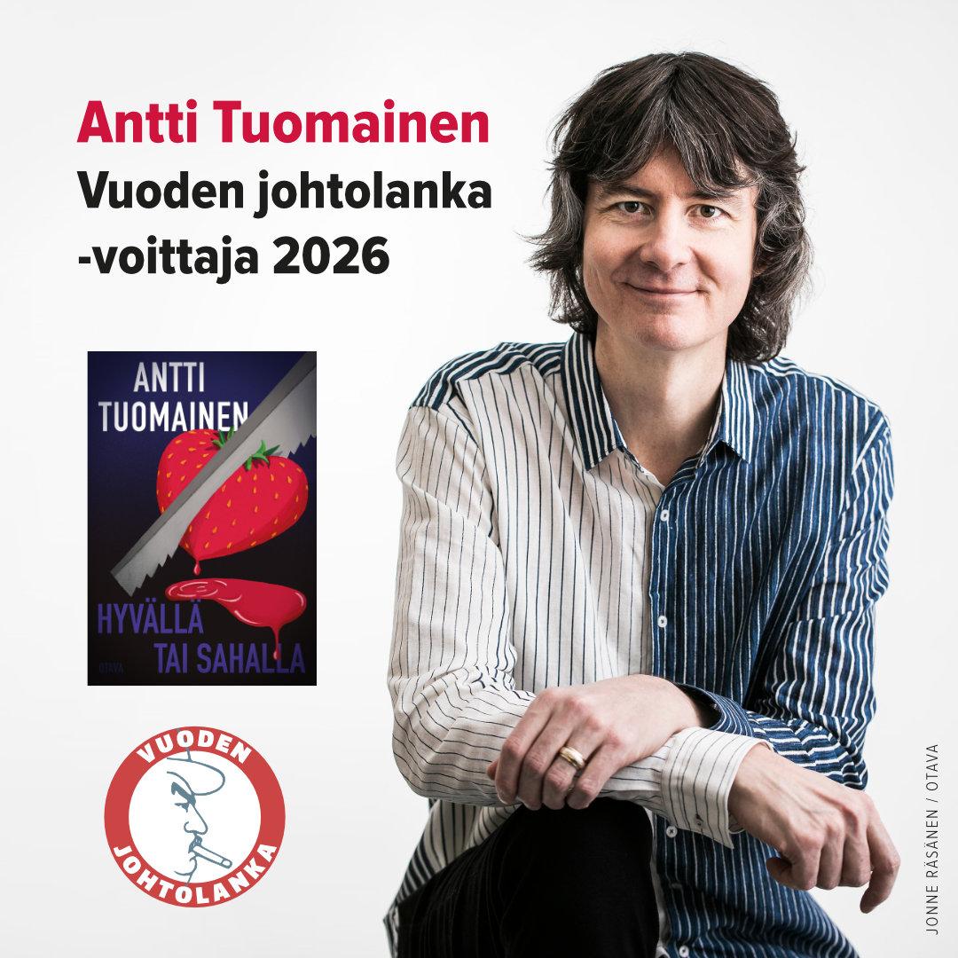 Suomen dekkariseura myöntää Vuoden johtolanka 2026 -palkinnon Antti Tuomaiselle teoksesta Hyvällä tai sahalla (Otava 2025).